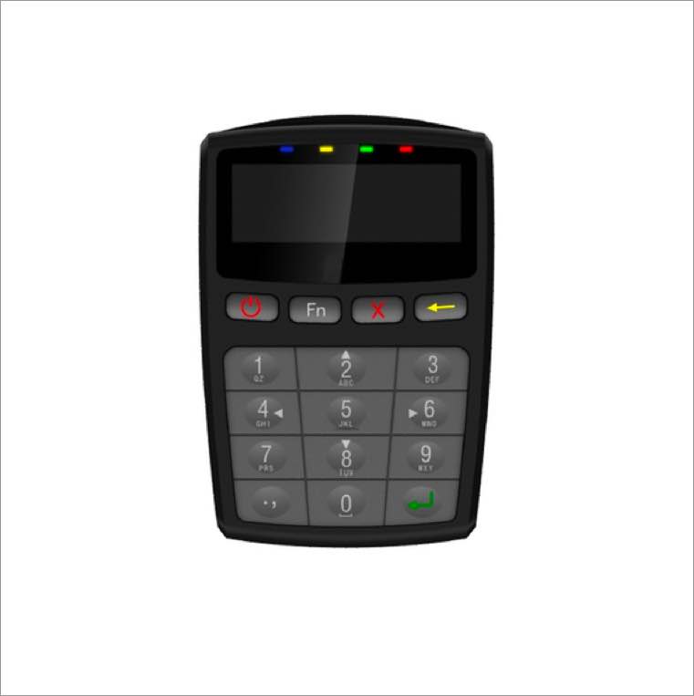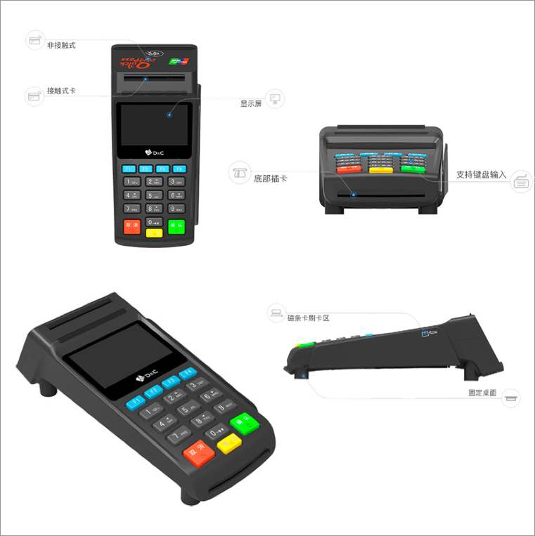具备金融IC卡接触、非接触应用功能,16个按键,锅仔形式;支持蜂鸣器