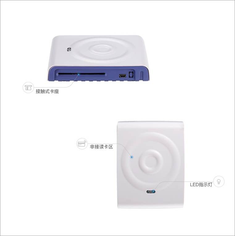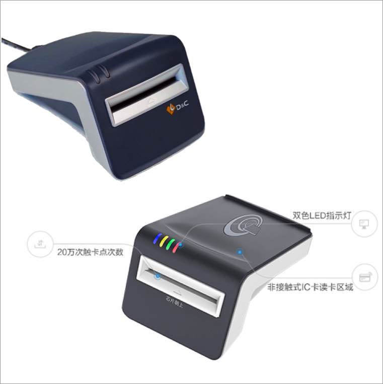 用于政府机关、银行等即需要操作城市通卡、社保卡、市民卡又需要操作第二代身份证卡的高端应用场合。