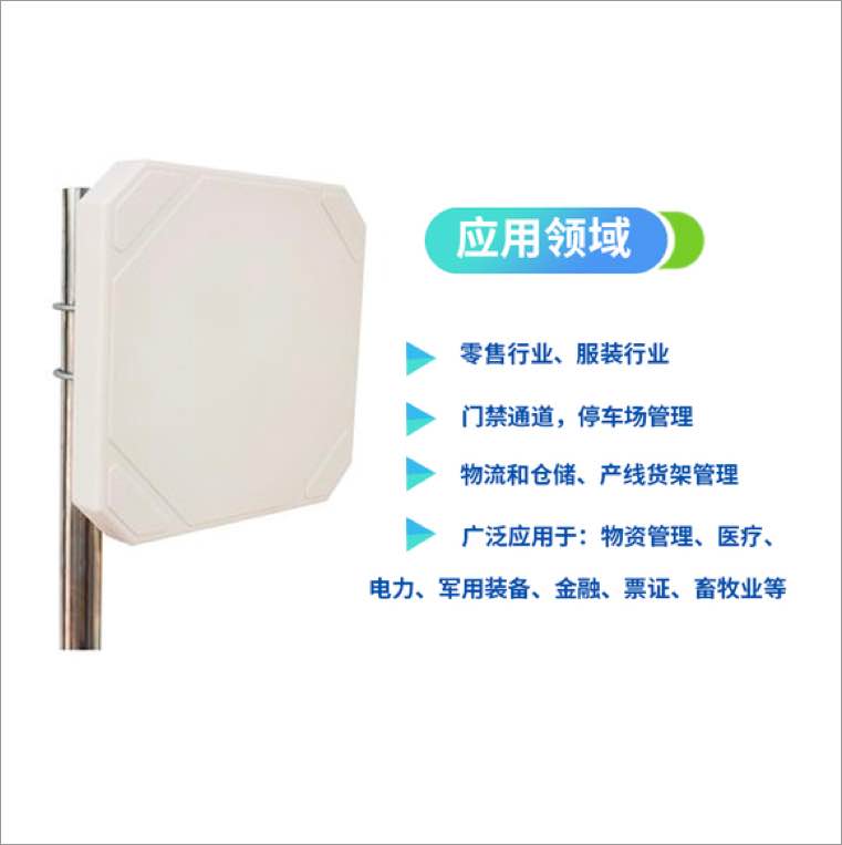 用于902-928MHz RFID射频识别系统(可定制欧标(865-868MHz)),天线与读写器分体,重量轻、体积小、低剖面、安装使用方便,应用范围广泛。适用于物流和仓储、产线货架管理、门禁通道、停车场管理、零售行业,服装行业、防伪管理、物资管理,医疗、电力、军用装备、金融、票证、畜牧业等。