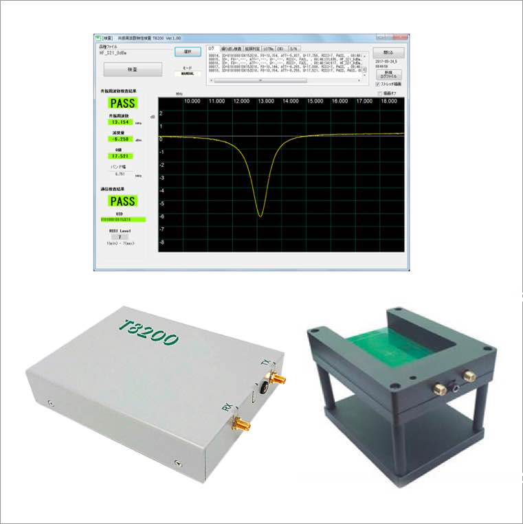 测量方法:磁场耦合测量方法;测量内容:传输电压和反射电压的振幅;检测项目:谐振频率、衰减、Q值、UID读取