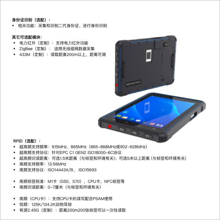 支持:二代身份证信息读取;支持GPS定位;支持录音