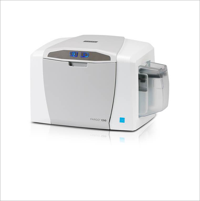 FARGO® C50 专为企业、学校和政府机构而设计,是一款易用且实惠的打印机,能够可靠地打印全彩色员工ID卡、优惠卡、支付卡或会员卡等。