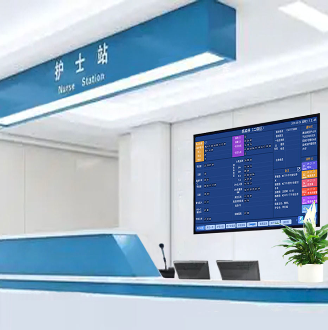 护士站互动看板系统是在护士站设置可触摸的电子显示屏,实时显示护士关注的患者信息、护理信息多维度展示,病区实时信息提醒,减少护士手抄工作量,将护士的时间还给患者。