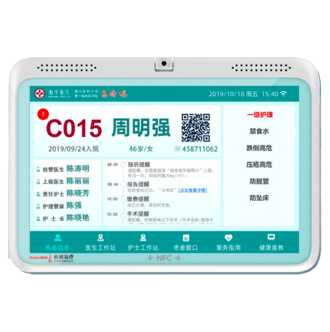 通过在床旁增设电子信息终端和上线住院患者服务系统,既可实现床头卡信息电子化,又能实现为患者提供住院信息服务,使患者家属“足不出户”,基于床旁优质服务,让患者家属切实享受国家医疗服务改善带来的便捷、便利,变被动服务为主动式的服务提醒和指引,消除患者因医患信息不对等而产生的焦虑感,减少医患矛盾。