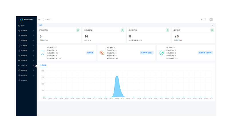• 工作站电脑:可以看到系统各流转数据、统计报表、设置洗涤价格模板等;