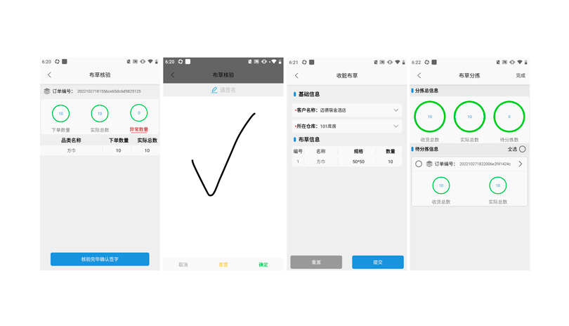 • 手机(平板):主要用于下单、查看收脏与送净记录、签字等。